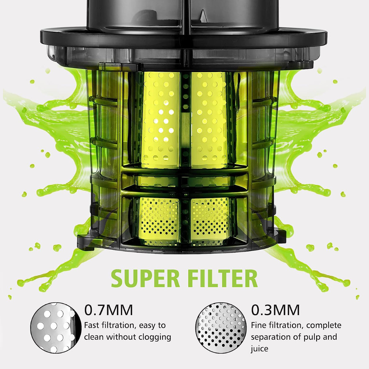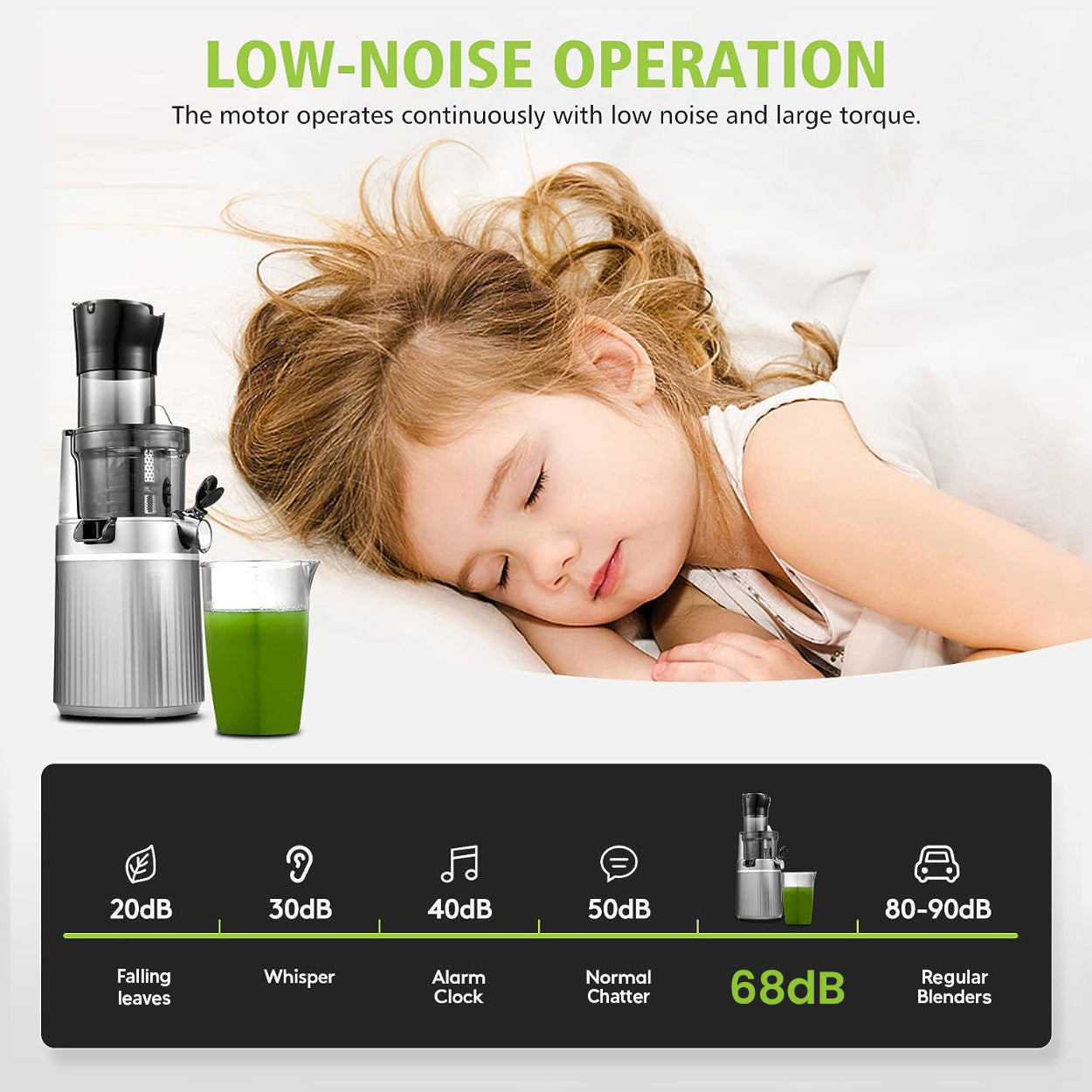 - Wide 80mm feed chute - fits large amounts of fruits and vegetables, while its high torque & low speed motor extracts every last drop of nutrient